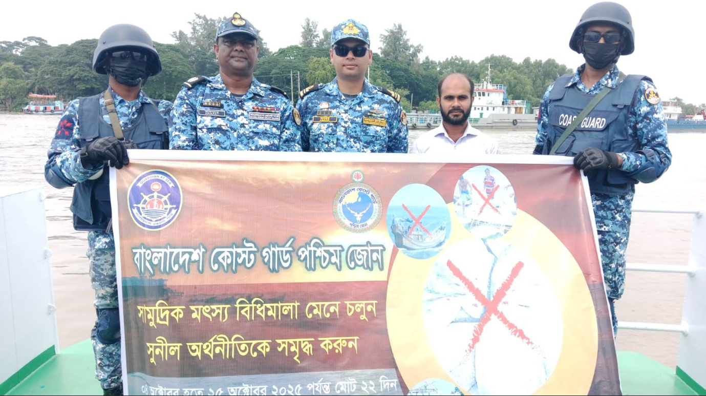 কোস্ট গার্ড পশ্চিম জোনের লেফটেন্যান্ট কমান্ডার আবরার হাসান বলেন, “মৎস্য সুরক্ষা ও সংরক্ষণ আইনের আওতায় ৪ অক্টোবর থেকে ২৫ অক্টোবর পর্যন্ত ২২ দিন সারা দেশে ইলিশ আহরণ, পরিবহন, মজুদ, বাজারজাত ও ক্রয়-বিক্রয় সম্পূর্ণ নিষিদ্ধ। এ নিষেধাজ্ঞা শতভাগ বাস্তবায়নে আমরা সর্বোচ্চ সতর্ক অবস্থায় আছি।”