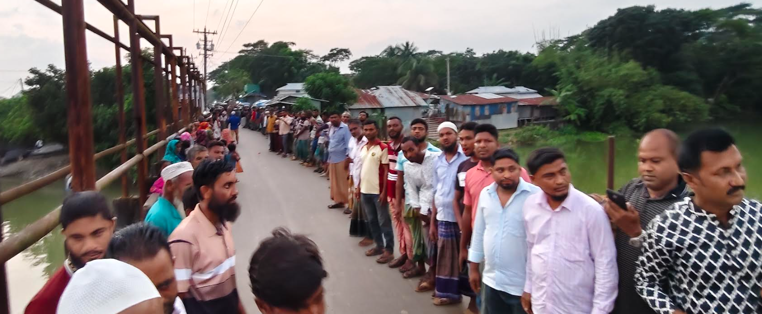মানববন্ধনে স্থানীয় জেলে, ব্যবসায়ী ও সাধারণ মানুষ অংশ নেন। কর্মসূচির শেষে অংশগ্রহণকারীরা “মা ইলিশ ধরব না, দেশের ক্ষতি করব না”—এই শ্লোগান দিয়ে মানববন্ধন সমাপ্ত করেন।