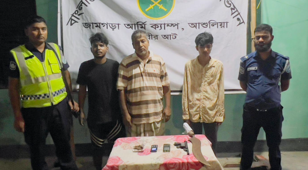 অন্যদিকে, পৃথক এক অভিযানে আশুলিয়ার কান্দাইল এলাকা থেকে একটি বিদেশি পিস্তলসহ আরও তিন যুবককে আটক করা হয়।