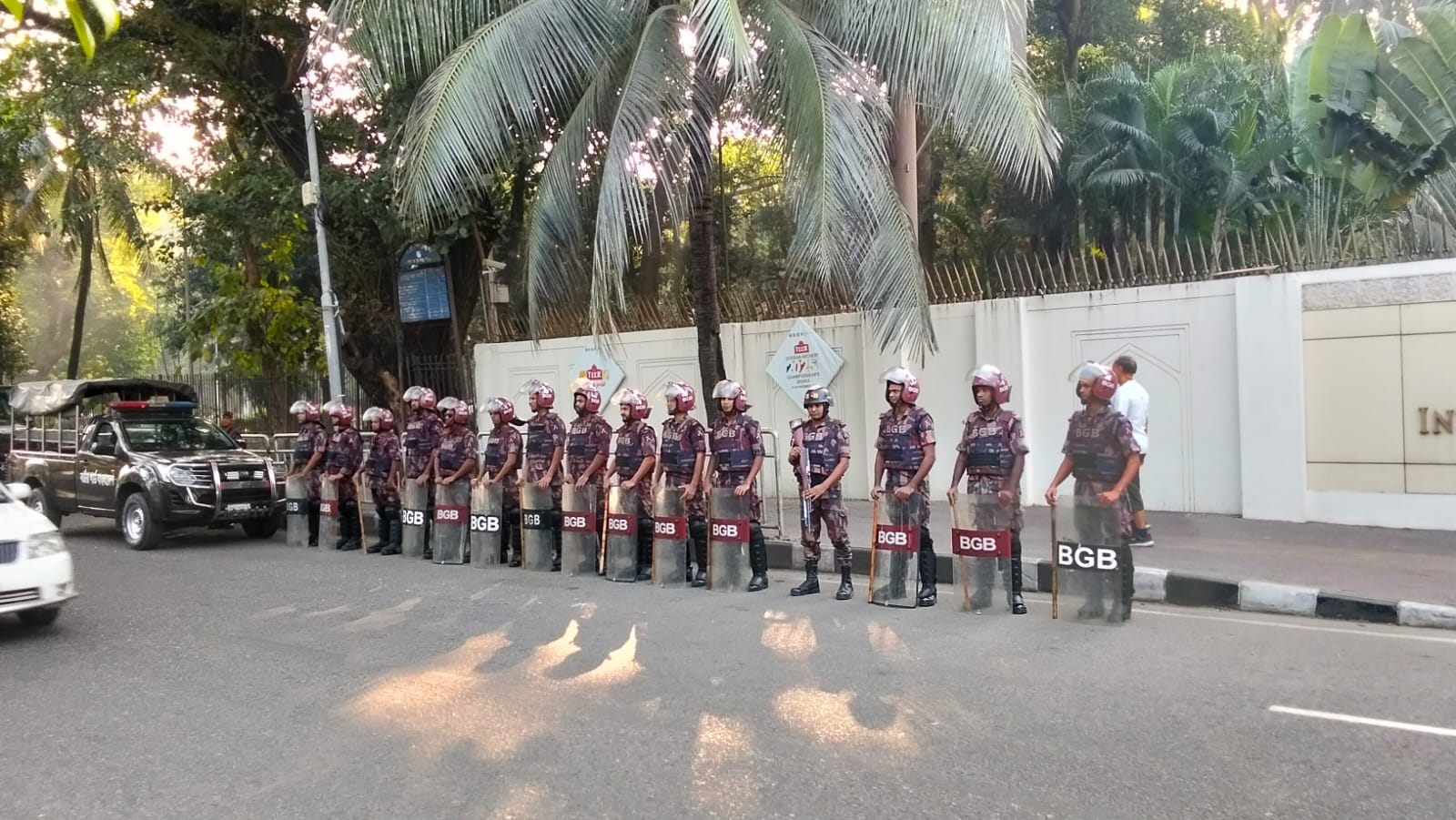 বুধবার (১২ নভেম্বর) সকাল থেকেই এয়ারপোর্ট, আব্দুল্লাহপুর, ধানমণ্ডি ৩২, হোটেল ইন্টারকন্টিনেন্টাল, কাকরাইল, হাইকোর্ট ও আশপাশের এলাকায় মোতায়েন করা হয়েছে ১২ প্লাটুন বর্ডার গার্ড বাংলাদেশ (বিজিবি)।